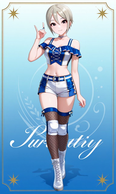 B is a (takagaki kaede, serious, off-shoulder ,crop top with silver