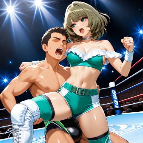 色々と生成した中で、プロレスっぽい感じなのは↑これくらいですね。