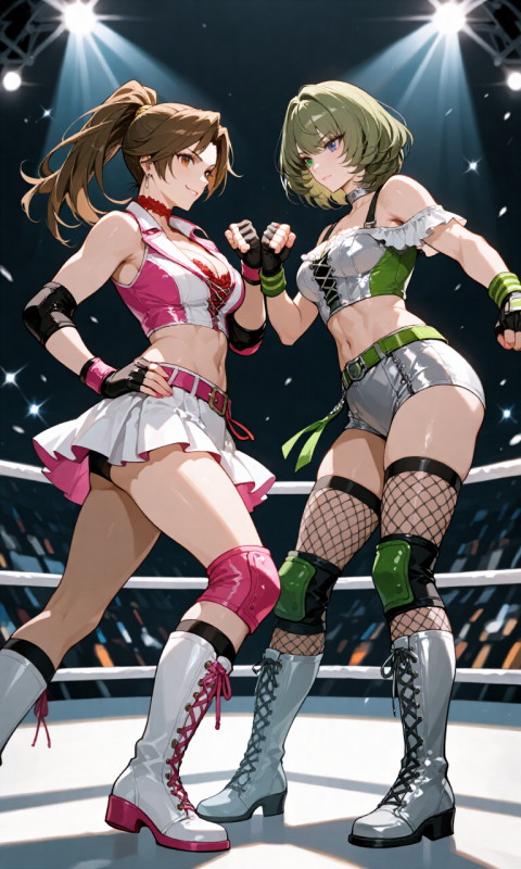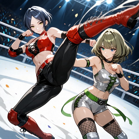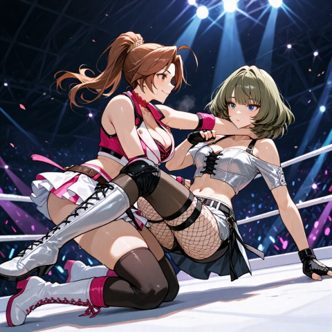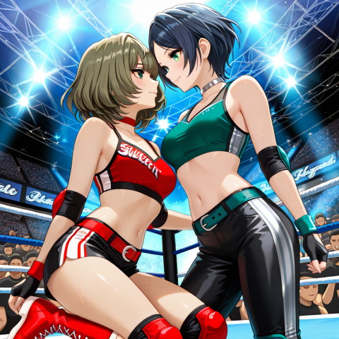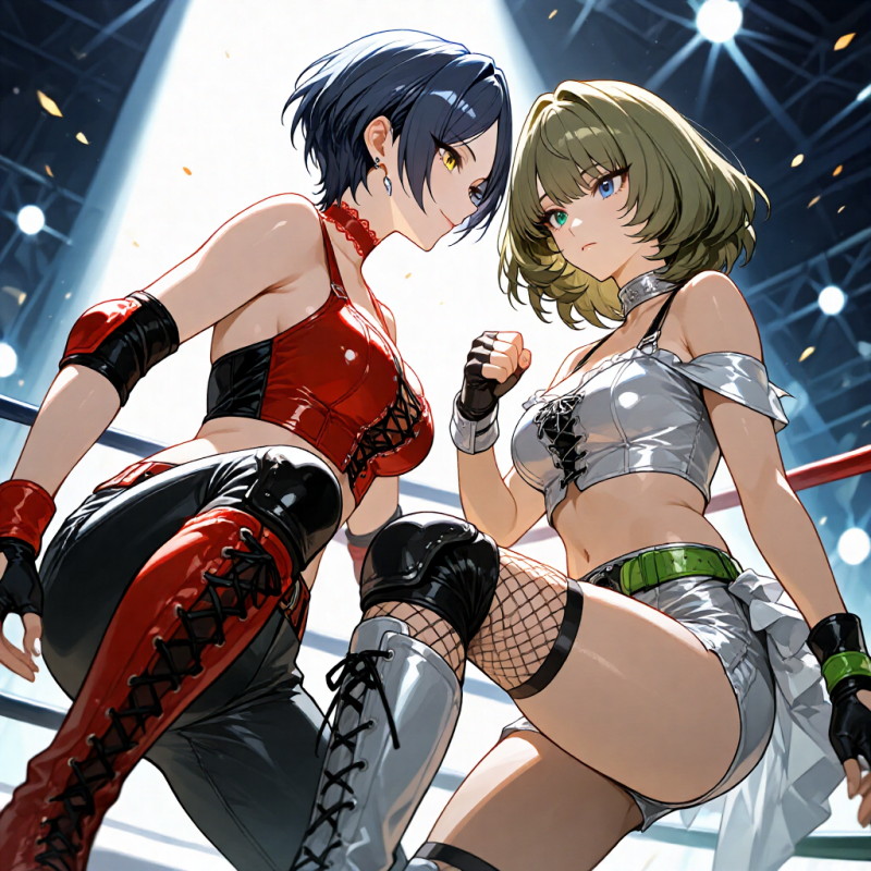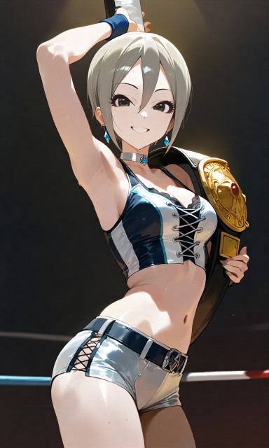 引き続きプロレス系のイラスト生成に勤しんでるのですが…、コスチュームは結構イイ感じに出せるようになりました。