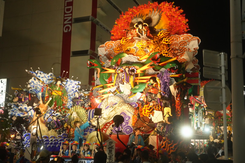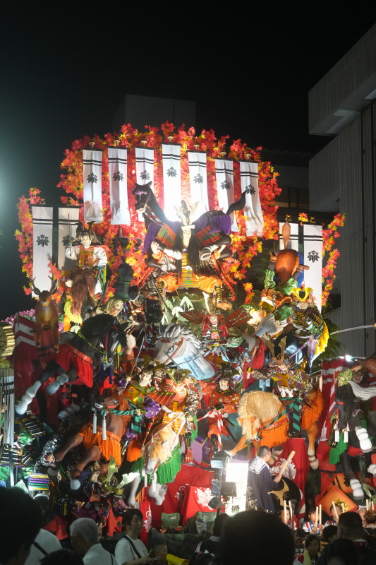 前夜祭って事で、山車は動かずに展示してあるだけなので、写真は撮り易い…かと思いきや、大勢の人が動き回ってるので…立ち止まって写真を撮るのは、ちょっと気を遣うな、と。