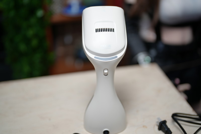 上の写真だと、辛うじて服がスチームが出る面に吸い付いているように見えるけど…、ここから1mmでも離すと、服は元の位置に戻ります。