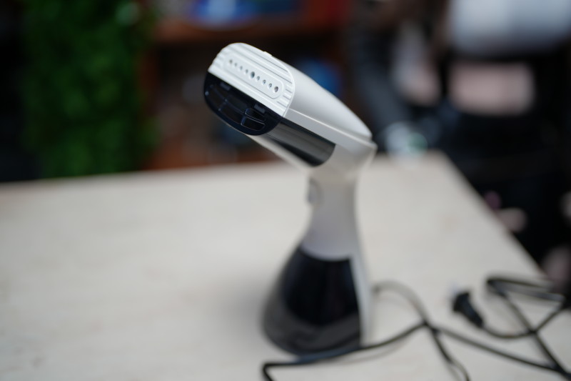普通のアイロンは、アイロン台とか用意するのが面倒臭くて全然使ってないけど、コイツはハンガーにかけたまま使えるアイロン台のいらないタイプなので、便利そうだな、と。