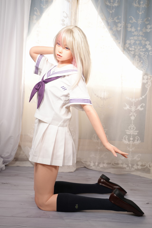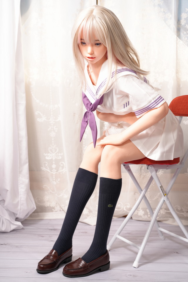 ハイソックスが前面に出るという点では、体育座りが理想のポーズなのだけれど、等身大ドールの可動範囲と脚の長さでは、なかなか難しいのよね。